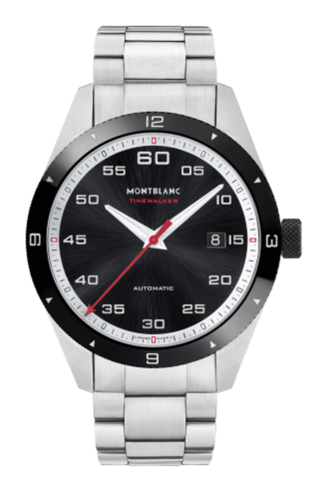 Швейцарские часы на механическом механизме с автоподзаводом представлены торговой маркой с часовой мануфактурой в Швейцарии Montblanc. Модель TimeWalker Date Automatic оснащена мануфактурным калибром MB 24.17, который был разработан специалистами Montblanc. Корпус часов произведен из нержавеющей стали. Форма круглая. Циферблат оформлен в стиле спидометра ретро-автомобиля. Выпуклое стекло из натурального сапфирового кристалла накрывает его от повреждений. Браслет выполнен из нержавеющей стали и оснащен раскладной пряжкой. Корпус герметичен до 100 метров глубины.