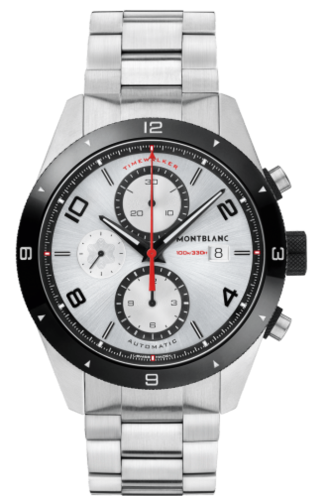 Корпус, а также браслет с асимметрично размещенными звеньями выполнены из нержавеющей стали. Установленный внутри стального корпуса механизм MB 25.07 оснащен спортивной функцией хронографа. Дизайн часов идеально подойдет любителям скорости, спортивных автомобилей и просто спортсменам. Динамические характеристики модели швейцарских часов Montblanc TimeWalker Chronograph Automatic станут будут сопровождать владельца каждый день. Стрелки и метки часов покрыты специальным люминесцентным составом Super-LumiNova®, который освещает показания данных в темноте. Водонепроницаемость корпуса на высоком уровне - 100 метров.