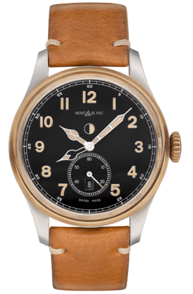 Модель швейцарских часов Montblanc 1858 Automatic Dual Time с отличным дизайном и исключительно точной механикой, разработанной на мануфактуре Montblanc. Калибр MB 29.19 отличается автоматическим подзаводом и индикацией времени второго часового пояса. Механизм с запасом хода на 42 часа. Корпус часов круглой формы изготовлен из стали в комбинации с бронзой. Бронза подчеркивает винтажный стиль коллекции. Часы с традиционным черным циферблатом, на котором стрелки и цифры покрыты бежевым люминесцентным покрытием Super-LumiNova®. Ремешок, что в комплекте, пошит из натуральной кожи теленка коричневого цвета и дополнен классической пряжкой.