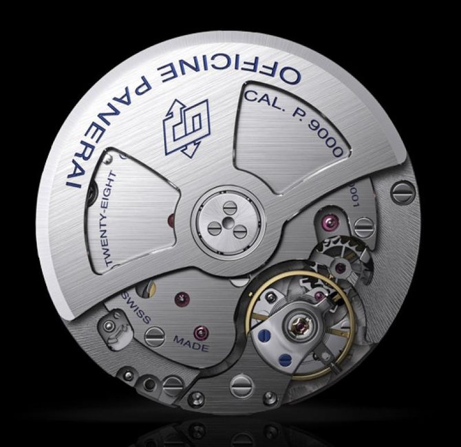 В сердце Radiomir Composite® Black Seal 3 Days Automatic находится мануфактурный калибр P.9000 с 72-часовым запасом хода, который достигается за счет использования двух заводных барабанов и ротора, вращающегося в двух направлениях. Механизм имеет диаметр 13¾ линий и колесо баланса, вращающееся с частотой 4Гц, а также устройство сброса секундной стрелки, которое позволяет легко синхронизировать часы.