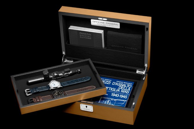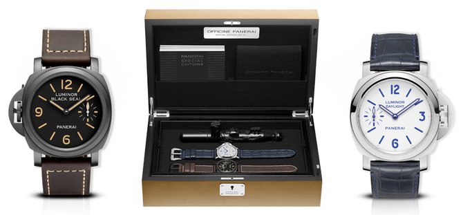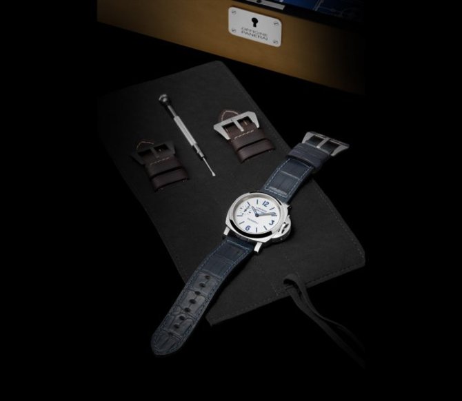 Уникальный часовой набор The Luminor 8 Days Set, состоящий из двух моделей наручных часов, выпущен ограниченным тиражом в 500 комплектов. Часы созданы в стиле «пре-вандомского» периода, который продлился с 1993 года по 1997 год. Этот период начался с презентации первой коллекции и закончился выкупом бренда Panerai гигантом - Richemont Group. Наручные часы Luminor Black Seal Left-Handed 8 Days имеют заводную головку и систему ее защиты с левой стороны корпуса. Часы Luminor Daylight 8 Days считаются репродукцией модели 1996 года, которая была выпущена в нескольких экземплярах. В обеих моделях установлен механический мануфактурный калибр P.5000 с ручным заводом, 15 1⁄2 линий, толщиной 4.5 мм, на 21 камне, баланс из сплава Glucydur®, частота баланса 21 600 полуколебаний/час. Противоударное устройство KIF Parechoc®. Запас хода механизма - 8 дней. Количество заодных барабанов - 2. Всего элементов механизма - 127. Корпус модели LUMINOR BLACK SEAL LEFT-HANDED 8 DAYS: диаметр 44 мм, материал - сталь AISI 316L с черным покрытием DLC. Корпус часов LUMINOR DAYLIGHT 8 DAYS: диаметр 44 мм, материал - полированная сталь AISI 316L. Ремешок модели LUMINOR BLACK SEAL LEFT-HANDED 8 DAYS: темно-коричневая телячья кожа Ponte Vecchio, бежевая прострочка, вшитая застежка. Ремешок LUMINOR DAYLIGHT 8 DAYS: синяя кожа аллигатора, вшитая застежка. Герметичность обеих корпусов - 300 метров (30 бар). Циферблат моделей под защитой сапфирового стекла. Часовые метки и стрелки покрыты люминесцентным составом.