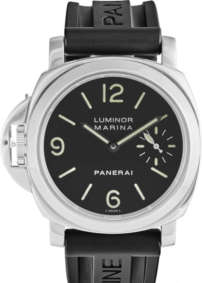 Швейцарские часы Officine Panerai Luminor Marina PAM00115 представлены в корпусе из нержавеющей стали, выполненном в форме подушки в размере 44 х 15 мм. Установленный механизм Panerai OP XI механического типа с ручным подзаводом и запасом хода на 56 часов. На циферблате черного цвета показываются часы, минуты, секунды. Часовые метки, цифры и стрелки покрыты люминесцентным составом. В комплекте идут два ремня: из каучука черного цвета и из кожи теленка коричневого цвета. Застежка классического типа выполнена из стали. Заводной ключ защищен запатентованной системой защиты от Officine Panerai. Защитное стекло на лицевой части корпуса выполнено из сапфирового кристалла. Также из сапфира выполнена и прозрачная задняя крышка, открывающая вид на работу механизма. Корпус часов имеет 300-метровый уровень герметичности (30 бар).