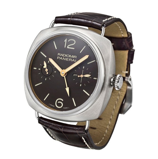 Итальянский производитель часов класса "люкс" - Panerai, разрабатывающий и собирающий часы в Швейцарии (г. Невшатель), представил пополнение модельного ряда "Radiomir" - модель "Tourbillon GMT Titanio" (реф. PAM00315). Эти часы функционируют с помощью швейцарского мануфактурного механизма с ручным подзаводом, производства компании Panerai. Механизм обеспечивает индикацию на циферблате часов, минут, секунд, уровня запаса хода и второго времени. Все элементы циферблата, в том числе и стрелки, покрыты люминесцентным составом. Корпус швейцарских часов сделан из титана. Диаметр корпуса: 48 мм. Ремешок к этой модели пошит из натуральной кожи луизианского аллигатора. Классическая застежка поможет зафиксировать часы на руке. Водостойкость корпуса - 100 метров. Циферблат находится под сапфировым стеклом.