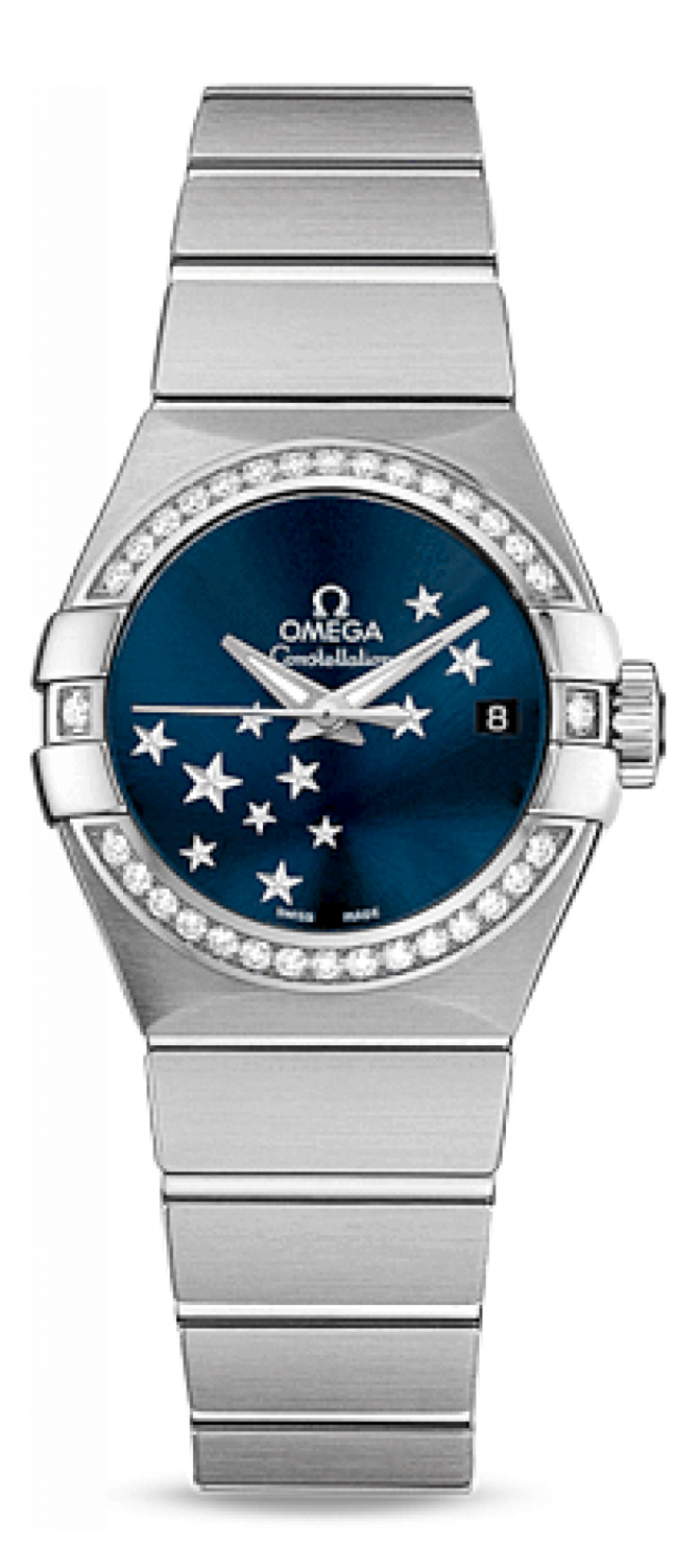 OMEGA Constellation Star – это не только удивительные, технически совершенные часы. Это материальное воплощение политики социальной ответственности, проводимой нашим брендом. Накладные декоративные звезды из 18-каратного белого золота усыпают сатинированный узором «солнечные лучи» синий циферблат с украшенным бриллиантами безелем. В корпусе из нержавеющей стали диаметром 27 мм с браслетом из того же материала установлен коаксиальный механизм OMEGA, калибр 8520, который виден сквозь прозрачную заднюю крышку корпуса. Часы герметичны и выдерживают давление в 10 бар (эквивалент глубины 100 метров). Запас хода этой модели составляет 50 часов.