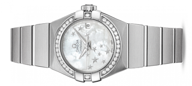 Основу этих часов составляет коаксиальный часовой механизм, калибр 8520, который виден сквозь прозрачную заднюю крышку корпуса. Характерной особенностью дизайна стали знаменитые скобки по бокам часового корпуса и впечатляющие циферблаты. Устойчивое к царапинам сапфировое стекло защищает циферблат. Эта сатинированная модель имеет белый перламутровый циферблат с россыпью накладных позолоченных звезд. Окошком указателя даты в положении «3 часа». Безель по контуру украшен бриллиантами и закреплен на корпусе диаметром 27 мм из нержавеющей стали. Часы дополняет браслет из нержавеющей стали. Запас хода этой модели составляет 50 часов. Часы герметичны и выдерживают давление в 10 бар (эквивалент глубины 100 метров).