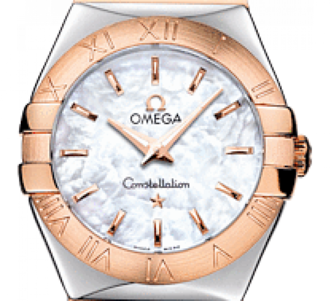 Эффектный дизайн часов OMEGA Constellation прошел проверку временем. Безель изготовлен из 18-каратного розового золота с выгравированными римскими цифрами. Корпус диаметром 27 мм из нержавеющей стали, который дополнен браслетом из нержавеющей стали и 18-каратного розового золота. Эта модель имеет белый перламутровый циферблат. Циферблат накрыт устойчивым к царапинам сапфировым стеклом с антибликовым покрытием. В этих часах используется высокоточный кварцевый механизм с родиевым покрытием OMEGA, калибр 1376. Часы водостойкие, можно погружаться на глубину до 100 метров. Запас хода часов - 41 месяц.
