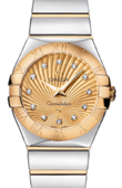 В этих часах используется высокоточный кварцевый механизм OMEGA, калибр 1376. Часы водостойкие, можно погружаться на глубину до 100 метров. Необычайно эффектный дизайн часов OMEGA Constellation прошел проверку временем. Эта сатинированная модель имеет белый перламутровый циферблат. Циферблат накрыт устойчивым к царапинам сапфировым стеклом. Безель с выгравированными римскими цифрами. Корпус диаметром 27 мм из 18-каратного желтого золота. Часы дополняет браслет из 18-каратного желтого золота.