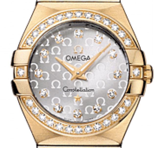 В этих часах используется высокоточный кварцевый механизм OMEGA, калибр 1376. Часы водостойкие, можно погружаться на глубину до 100 метров. Запас хода часов - 41 день. Необычайно эффектный дизайн часов OMEGA Constellation прошел проверку временем. Украшенный бриллиантами безель из 18-каратного желтого золота. Корпус диаметром 24 мм из 18-каратного желтого золота дополнен браслетом из 18-каратного желтого золота. Эта сатинированная модель имеет серебристый циферблат с упорядоченным узором из логотипов OMEGA и бриллиантовыми часовыми метками. Циферблат накрыт устойчивым к царапинам сапфировым стеклом с антибликовым покрытием.