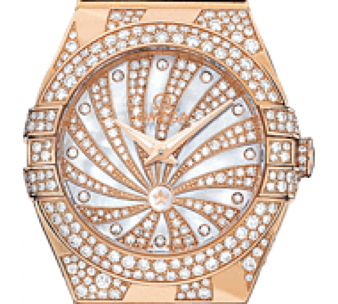 В этих часах с более чем 600 бриллиантами используется высокоточный кварцевый механизм с родиевым покрытием OMEGA, калибр 1376. Часы водостойкие, можно погружаться на глубину до 100 метров. Запас хода часов - 41 день. Эта роскошная модель имеет украшенный бриллиантами циферблат из 18-каратного розового золота с белым перламутровым узором Supernova. Циферблат накрыт устойчивым к царапинам сапфировым стеклом с антибликовым покрытием. Безель с паве из разноразмерных бриллиантов закреплен на корпусе диаметром 24 мм из 18-каратного розового золота золота. Браслет из 18-каратного розового золота с бриллиантовым узором Supernova, продолжающим рисунок циферблата.