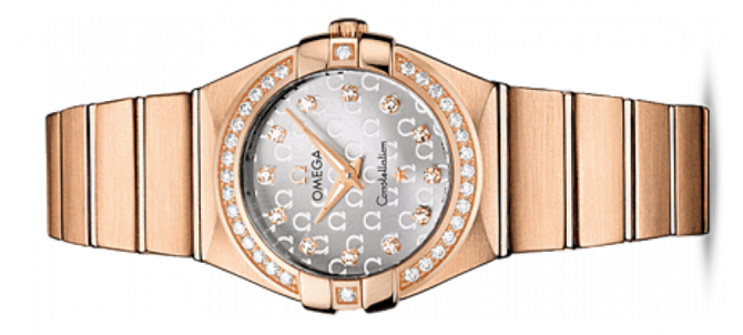 Особенностью часов стали знаменитые скобки по бокам часового корпуса и впечатляющие циферблаты. Эта сатинированная модель имеет серебристый циферблат с упорядоченным узором из логотипов OMEGA. Часовые метки изготовлены из бриллиантов. Циферблат накрыт устойчивым к царапинам сапфировым стеклом с антибликовым покрытием изнутри. Украшенный бриллиантами безель закреплен на корпусе диаметром 27 мм из 18-каратного розового золота. Браслет из 18-каратного розового золота. В этих часах используется высокоточный кварцевый механизм OMEGA, калибр 1376. Запас хода часов весьма внушительный - 41 месяц. Также часы водостойкие и выдерживают погружение в воду на глубину до 100 метров.