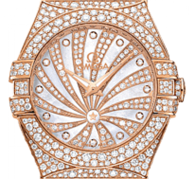 Эффектный дизайн часов OMEGA Constellation прошел проверку временем. В этих часах с более чем 1900 бриллиантов. Эта роскошная модель имеет украшенный бриллиантами циферблат из 18-каратного золота с белым перламутровым узором Supernova, накрытый устойчивым к царапинам сапфировым стеклом с двухсторонним антибликовым покрытием. Корпус диаметром 27 мм из 18-каратного розового золота с золотым безелем дополнен браслетом из 18-каратного розового золота. Безель, корпус и звенья браслета украшены паве из разноразмерных бриллиантов. В этих часах с более чем 1900 бриллиантами используется высокоточный кварцевый механизм OMEGA, калибр 1376. Запас хода часов весьма внушительный - 41 месяц. Также часы водостойкие и выдерживают погружение в воду на глубину до 100 метров.