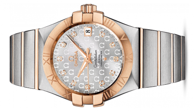 Эта модель имеет серебристый циферблат с упорядоченным узором из логотипов OMEGA, бриллиантовыми метками. Окошко указателя даты находится в положении «3 часа». Стекло сапфировое выпуклое, устойчивое к царапинам с антибликовым покрытием. Корпус диаметром 35 мм из нержавеющей стали. Безель из 18-каратного желтого золота с выгравированными римскими цифрами. В этой модели используется коаксиальный часовой механизм, который виден сквозь сапфировое стекло задней крышки корпуса. Браслетом изготовлен из нержавеющей стали и 18-каратного желтого золота. Запас хода: 48 часов. Герметичность: 10 бар (100 метров).