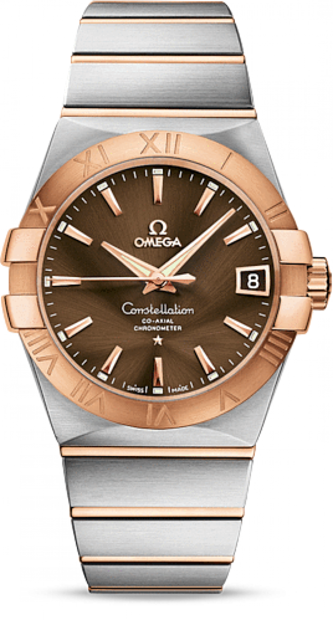 В этих изысканных часах используется коаксиальный часовой механизм OMEGA, калибр 8500, который виден сквозь прозрачную заднюю крышку корпуса. Характерной особенностью стали знаменитые скобки по бокам часового корпуса и впечатляющие циферблаты. Эта модель имеет коричневый циферблат с окошком указателя даты в положении «3 часа» и устойчивым к царапинам сапфировым стеклом с антибликовым покрытием изнутри. Безель из 18-каратного розового золота с выгравированными римскими цифрами закреплен. Корпус диаметром 38 мм из нержавеющей стали, который дополнен браслетом из нержавеющей стали и 18-каратного розового золота. Запас хода - 60 часов. Часы герметичны и выдерживают давление в 10 бар (эквивалент глубины 100 метров).