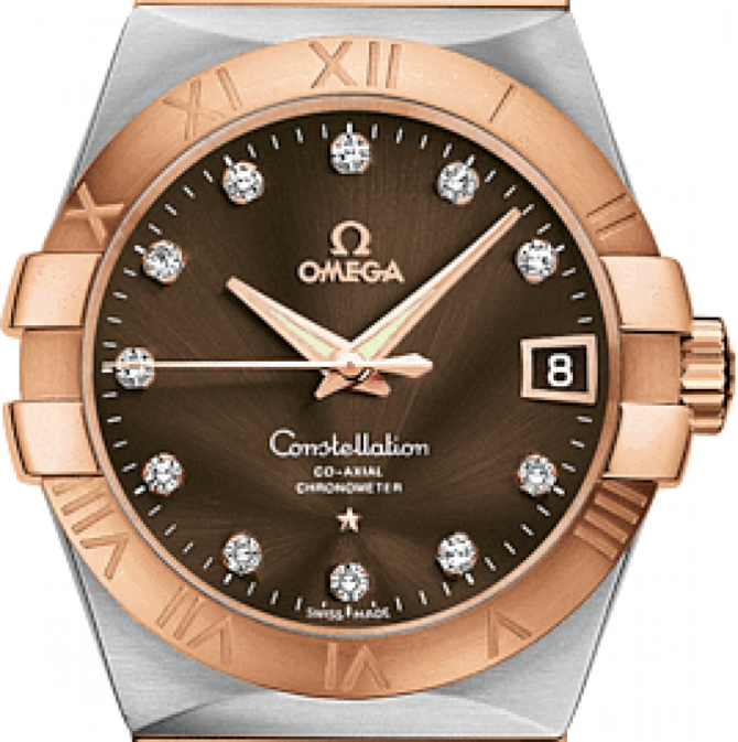 В этой модели используется коаксиальный часовой механизм OMEGA, калибр 8500. Его видно сквозь прозрачную заднюю крышку корпуса. Безель из 18-каратного розового золота с выгравированными римскими цифрами закреплен. Корпус диаметром 38 мм из нержавеющей стали, который дополнен браслетом из нержавеющей стали и 18-каратного розового золота. Эта модель имеет коричневый циферблат с окошком указателя даты в положении «3 часа» и устойчивым к царапинам сапфировым стеклом с антибликовым покрытием изнутри. Часовые отметки выполнены из бриллиантов. Часы герметичны и выдерживают давление в 10 бар (эквивалент глубины 100 метров). Запас хода - 60 часов.