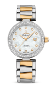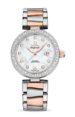 Представленные элегантные механические наручные часы от Omega вошли в коллекцию "De Ville". Часовой 34-миллиметровый корпус изготовлен из качественной нержавеющей стали. Задняя крышка корпуса изготовлена из сапфирового стекла. Циферблат покрыт выпуклым, устойчивым к царапинам, сапфировым стеклом с антибликовым покрытием с обеих сторон. Водонепроницаемость корпуса - 100 метров. Стальной браслет наделен раскладывающейся застежкой. Заводная головка - рифленая, завинчивающаяся. Модель функционирует на швейцарском мануфактурном механизме с автоматическим подзаводом, коаксиальным спуском, инерционным сектором для ускорения подзавода и 50-часовым запасом хода. К слову, калибр Omega 8520 отмечен швейцарским институтом хронометрии (COSC) и награжден официальным сертификатом COSC как хронометр. На циферблате из натурального морского перламутра указываются часы, минуты и секунды, а около 3-часовой отметки в специальном окошке указывается текущая дата. Часовые индексы заменяют 11 белых бриллиантов. С далекого 1955 года женские наручные часы линии Ladymatic, выпускаемые легендарной швейцарской часовой маркой Omega, считаются законодателями моды на механические дамские часы. Более 60-ти лет с тех пор позади, однако особый стиль и тонкая элегантность моделей коллекции De Ville не перестает впечатлять и современных представительниц "слабого" пола.