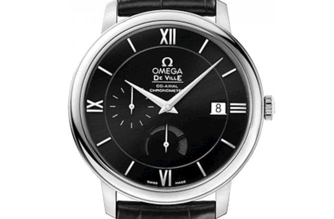 Каждая OMEGA De Ville Prestige завоевала любовь поклонников бренда своим классическим элегантным дизайном. Входящие в нее модели отличаются чистотой классических линий, роскошной отделкой и вневременной эстетикой. Основу этих часов составляет коаксиальный часовой механизм, калибр 2627. Запас хода часового механизма составляет 48 часов. Безель закреплен на корпусе диаметром 39,5 мм из нержавеющей стали с черным кожаным ремешком. Данная модель имеет циферблат черного цвета с делением на две зоны и радиальным сатинированием. На циферблате присутствуют римские цифры 3, 6, 9 и 12 в винтажном стиле. Эффектный циферблат имеет окошко указателя даты, индикатор запаса хода, малую секундную стрелку и защищен выпуклым,устойчивым к царапинам сапфировым стеклом с антибликовым покрытием изнутри. Часы герметичны и сохраняют свою водонепроницаемость на глубине до 30 метров.