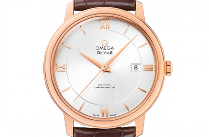 Коллекция OMEGA De Ville Prestige это коллекция часов завоевала любовь поклонников бренда своим классическим элегантным дизайном. Все модели которые входят в нее отличаются чистотой классических линий, роскошной отделкой и вневременной эстетикой. Основу этих часов составляет коаксиальный часовой механизм, калибр 2500. Запас хода часового механизма данной модели составляет 48 часов. Безель закреплен на корпусе диаметром 39,5 мм из 18-каратного розового золота с коричневым кожаным ремешком. Эффектный циферблат с окошком указателя даты в положении «3 часа» защищен устойчивым к царапинам сапфировым стеклом с антибликовым покрытием. На циферблате присутствуют римские цифры 3, 6, 9 и 12 в винтажном стиле. Часы сохраняют свою водонепроницаемость на глубине до 30 метров. Модель имеет циферблат серебристого цвета с делением на две зоны и радиальным сатинированием.