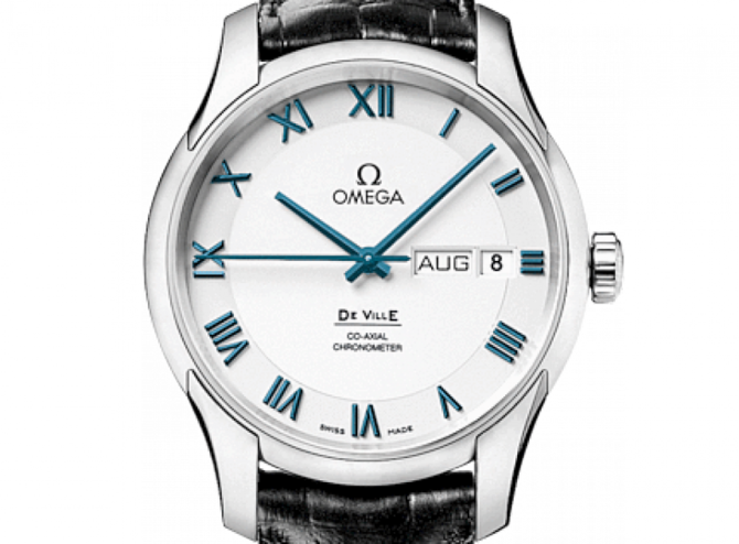 Элегантные часы OMEGA De Ville характеризуются уникальным классическим дизайном. Данная модель имеет белый эмалевый циферблат со стрелками и часовыми метками из материала 850 Blue-Gold® и окошками указателей даты и месяца в положении «3 часа». Эффектный циферблат защищен устойчивым к царапинам сапфировым стеклом с двусторонним антибликовым покрытием. Корпус диаметром 41 мм из платины со внутренней вставкой из сапфирового стекла дополнен платиновым безелем и коричневым кожаным ремешком. Основу этих превосходных часов составляет коаксиальный часовой механизм OMEGA, калибр 8611, который виден сквозь прозрачную заднюю крышку корпуса. Запас хода часового механизма этой модели составляет 55 часов. Часы герметичны и сохраняют свою водонепроницаемость на глубине до 100 метров.