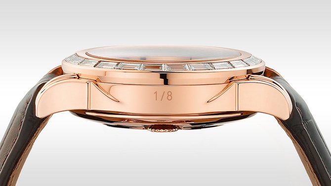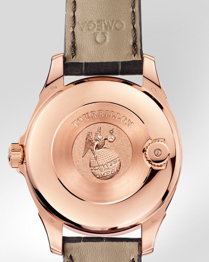 Швейцарские часы, производства известного часового бренда Omega, представлены в круглом корпусе из розового золота, диаметром 38.7 миллиметров. Безель корпуса декорирован паве из крупных багетных бриллиантов. Эта модель - результат кропотливой ручной работы мастеров компании Omega. Модель функционирует на эксклюзивном швейцарском мануфактурном механизме OMEGA 2635 с центральным турбийоном, устраняющим влияние сил земного тяготения. Лимитированный тираж - всего 8 экземпляров часов на весь мир! Особой уникальности придает часам гравировка на корпусе с содержанием «Limited Edition» - лишнее напоминание об эксклюзивности модели. Циферблат закрыт устойчивым к царапинам сапфировым стеклом, сквозь которое виден механизм. Ремешок из кожи аллигатора коричневого цвета - в комплекте. Калибр Omega 2635 работает от автоподзавода. Особенности калибра: коаксиальный спуск; PVD-покрытие коричневого цвета со спиральным рисунком; ручная полировка мостов и механизмов; платиновый инерционный сектор; центральная каретка турбийона за минуту совершает полный оборот вокруг своей оси. Калибр OMEGA 2635 - официально сертифицированный хронометр с 45-часовым запасом хода. Герметичность корпуса минимальна - 30 метров.