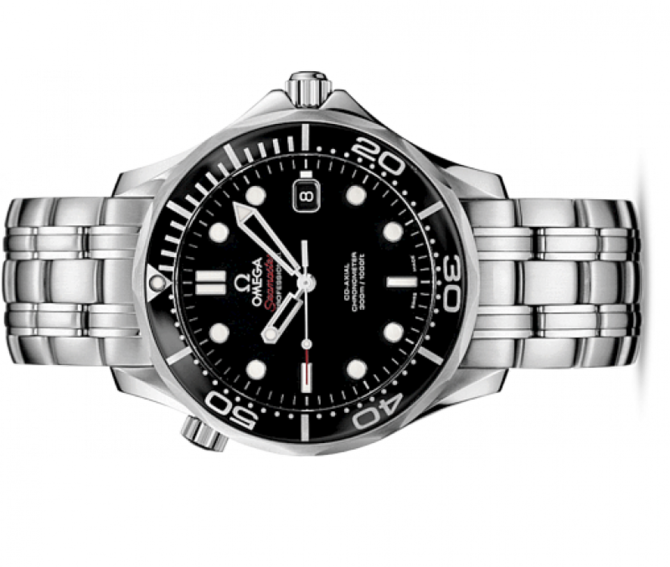 Этот превосходный образец часового мастерства отображает богатый опыт OMEGA в производстве дайверских часов и свойственный бренду дух новаторства. Эффектный циферблат защищен устойчивым к царапинам сапфировым стеклом с двусторонним антибликовым покрытием. Данная модель имеет черный циферблат с окошком указателя даты в положении «3 часа». Часы способны сохранять свою водонепроницаемость на глубине до 300 метров. Корпус диаметром 36,25 мм из нержавеющей стали с гелиевым клапаном у отметки «10 часов» дополнен черным керамическим безелем, вращающимся в одном направлении. К часам прилагается браслет из нержавеющей стали. В модели OMEGA Seamaster Diver 300M используется коаксиальный часовой механизм, калибр 2500. Запас хода механизма - 48 часов.
