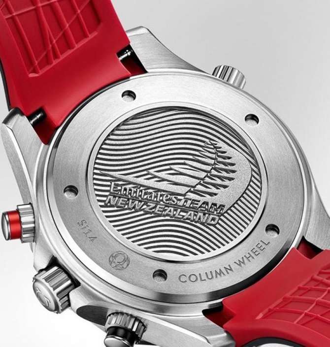 Часы от легендарной компании Omega "Seamaster Diver 300M Co-Axial Chronograph ETNZ" представлены в корпусе из титана 5-го класса, диаметром 44 миллиметра. Циферблат часов с пескоструйной обработкой. Стрелки покрыты люминесцентным составом, который светится в темноте. Дайверский керамический безель вращается. Водостойкость модели, как и полагается дайверским часам, 300 метров. На данной модели наручных часов есть ручной гелиевый клапан с рифленой завинчивающейся головкой. Ремешок, которым укомплектованы часы, выполнен из натурального каучука с рифленым рельефом верхней, черной стороны и нижней, красной. Функционируют часы от мануфактурного швейцарского механизма Omega 3300 с автоподзаводом. Его элементы произведены из кремния, наряду с коаксиальным спуском и колонным колесом хронографа. Модель обладает официальным сертификатом COSC как хронометр.