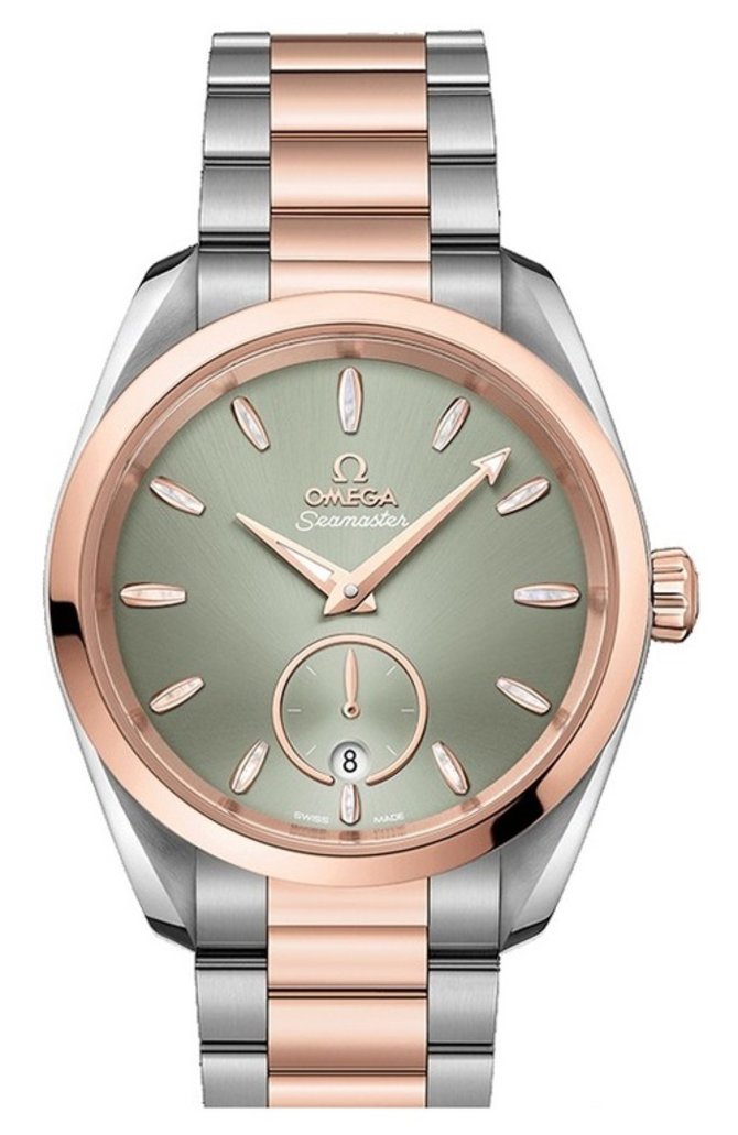 Элегантные женские наручные часы от компании Omega - Seamaster Aqua Terra 150 m Chronometer 38 mm 220.20.38.20.10.001 представлены в комбинированном корпусе из розового золота и нержавеющей стали, размером 38 х 19 мм, с водонепроницаемостью 150 метров. Внутри корпуса специалисты мануфактуры установили автоматический механизм Omega 8802, обладающий запасом хода на 55 часов. На циферблате отображаются часы, минуты, секунды, дата. В комплекте - комбинированный браслет из розового золота и нержавеющей стали с раскладной застежкой. С обеих сторон часы защищены стеклом из натурального сапфирового кристалла. Стрелки из золота покрыты люминесцентным составом. Часовые метки выложены бриллиантами. Индикатор даты и секундный субциферблат расположены в области отметки "6 часов". Прозрачная задняя крышка демонстрирует работу установленного механизма. Часы выпущены в 2023 году.