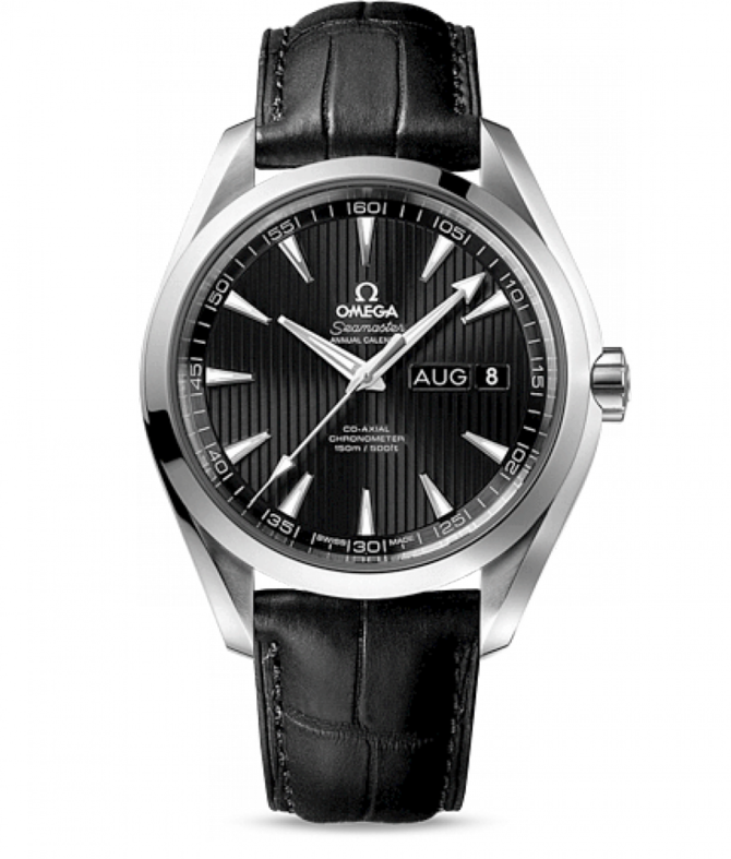 Эти высокопрочные часы классического дизайна воздают должное богатому морскому наследию OMEGA. Эти часы классического дизайна воздают должное богатому морскому наследию OMEGA. Безель изготовлена из нержавеющей стали и расположена на корпусе диаметром 43 мм из стали, который дополнен черным ремешком из кожи аллигатора. В этих часах используется эксклюзивный коаксиальный часовой механизм OMEGA, калибр 8601. Часы сохраняют свою водонепроницаемость при давлении до 15 бар (150 метров / 500 футов). Запас хода часов - 55 часов. Мгновенно узнаваемый дизайн циферблата, характерный для коллекции OMEGA Seamaster Aqua Terra 150M, напоминает тиковое покрытие роскошных яхт. Данная модель имеет черный циферблат с узором из вертикальных полос (Teak Concept). Окошка указателя месяца и даты расположены в положении «3 часа». Оригинальный циферблат данной модели защищен устойчивым к царапинам сапфировым стеклом с двусторонним антибликовым покрытием.