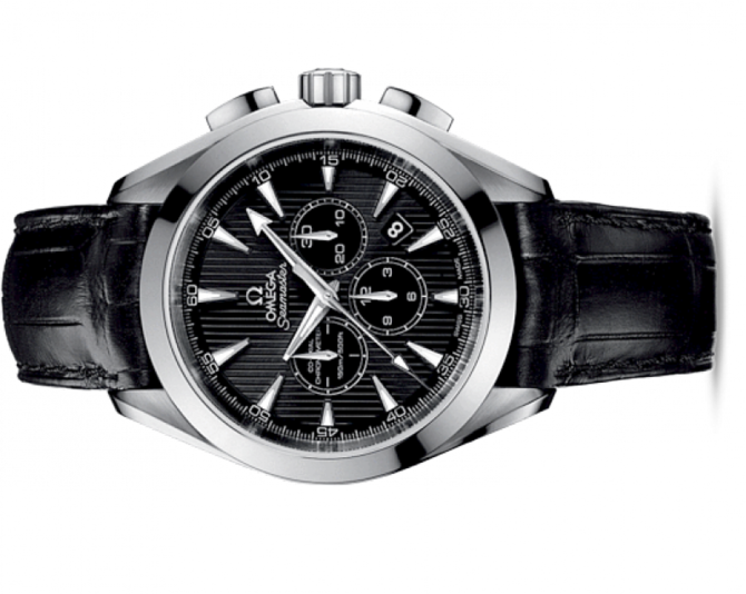 Узнаваемый дизайн циферблата, характерный для коллекции OMEGA Seamaster Aqua Terra 150M, напоминает текстуру тикового покрытия роскошных яхт. Оригинальный циферблат защищен устойчивым к царапинам сапфировым стеклом с двусторонним антибликовым покрытием. Данная модель имеет черный лакированный циферблат, оформленный в стиле фирменной «тиковой концепции». В положениях «3 часа» «6 часов» и «9 часов» размещены 30-минутный счетчик, 12-часовой счетчик и отдельный индикатор малой секундной стрелки соответственно. В этом сертифицированном хронометре используется коаксиальный часовой механизм, калибр 3313, который хорошо виден через прозрачную заднюю крышку. Запас хода данного механизма - 52 часа. Также часы водонепроницаемы и способны выдержать давление на глубине до 150 метров. Корпус диаметром 44 мм из нержавеющей стали с черным ремешком из кожи аллигатора дополнен элегантным безелем.