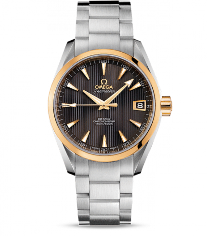 Оригинальный циферблат защищен устойчивым к царапинам сапфировым стеклом с двусторонним антибликовым покрытием. Данная модель имеет серый циферблат, оформленный в стиле фирменной «тиковой концепции», с окошком указателя даты в положении «3 часа». В этом сертифицированном хронометре используется коаксиальный часовой механизм OMEGA, калибр 8500, который хорошо виден через прозрачную заднюю крышку. Корпус диаметром 38.5 мм из нержавеющей стали с стальным браслетом дополнен элегантным безелем с 18-каратного желтого золота. Запас хода данного механизма - 60 часов. Также часы водонепроницаемы и способны выдержать давление на глубине до 150 метров.