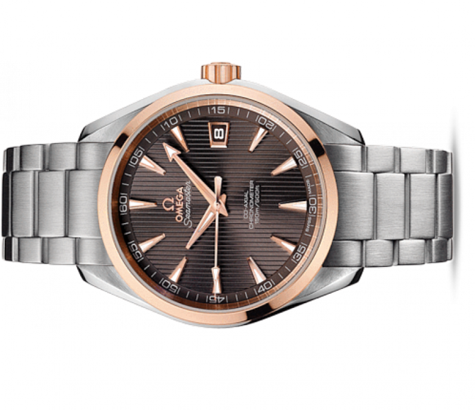 Оригинальный циферблат защищен устойчивым к царапинам сапфировым стеклом с двусторонним антибликовым покрытием. Мгновенно узнаваемый дизайн циферблата, характерный для коллекции OMEGA Seamaster Aqua Terra 150M, напоминает текстуру тикового покрытия роскошных яхт. Данная модель имеет коричневый циферблат, оформленный в стиле фирменной «тиковой концепции», с окошком указателя даты в положении «3 часа». В этом сертифицированном используется коаксиальный часовой механизм OMEGA, калибр 8500, который хорошо виден через прозрачную заднюю крышку. Корпус диаметром 41,5 мм из нержавеющей стали и браслетом с того же материала, и доплнен элегантным безелем с 18-каратного розового золота. Запас хода данного механизма - 60 часов. Также часы водонепроницаемы и способны выдержать давление на глубине до 150 метров.
