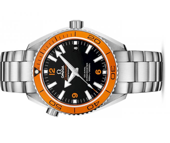 В 2005 году OMEGA выпустила линию Planet Ocean. Коаксиальный калибр OMEGA 8500, механическое сердце этого сертифицированного хронометра, хорошо виден через прозрачную заднюю крышку. Запас хода которого составляет 60 часов. На ее черном циферблате, защищенном устойчивым к царапинам сапфировым стеклом c двухсторонним антибликовым покрытием, выделяется окошко указателя даты в положении «3 часа». Часовые метки "6", "9" и "12" окрашены в оранжевый цвет. Корпус диаметром 42 мм из нержавеющей стали с стальным браслетом, дополнен оранжевым дайверским безелем, вращающимся в одном направлении. Часы OMEGA Seamaster Planet Ocean 600M, оснащенные гелиевым клапаном, сохраняют водонепроницаемость на глубинах до 60 бар (600 метров / 2000 футов).
