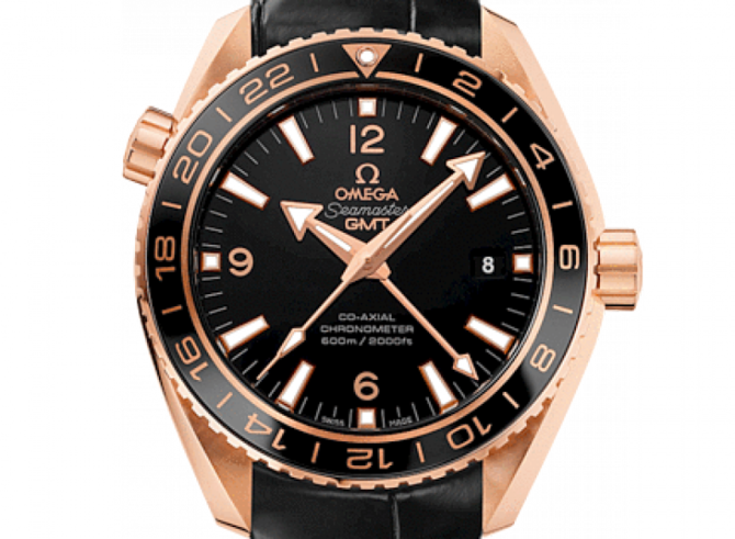 Стильная модель OMEGA Seamaster Planet Ocean 600M GMT отдает дань историческим традициям дайверских часов OMEGA. Эта модель имеет черный лакированный циферблат с окошком даты в положении «3 часа» и центральной стрелкой GMT. Он накрыт устойчивым к царапинам сапфировым стеклом с антибликовым покрытием. Полированный черный керамический безель OMEGA Ceragold™ вращается в обоих направлениях и закреплен на корпусе диаметром 43,5 мм из 18-каратного розового золота с черным кожаным ремешком. Часы OMEGA Seamaster Planet Ocean 600M GMT имеют гелиевый клапан и сохраняют водонепроницаемость 600 метров. Коаксиальный калибр OMEGA 8615 этого сертифицированного хронометра виден сквозь прозрачную заднюю крышку корпуса. Запас хода часов - 60 часов.