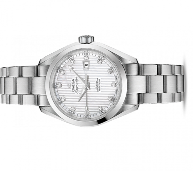 Высокопрочные часы с классическим дизайном воздают должное богатому морскому наследию OMEGA. Корпус диаметром 34 мм из нержавеющей стали с браслетом из стали дополнен элегантным безелем. В этом сертифицированном хронометре используется коаксиальный часовой механизм OMEGA, калибр 8521, который хорошо виден через прозрачную заднюю крышку. Запас хода данного механизма - 50 часов. Часы водонепроницаемы и способны выдержать давление на глубине до 150 метров. Мгновенно узнаваемый дизайн циферблата, характерный для коллекции OMEGA Seamaster Aqua Terra 150M, напоминает текстуру тикового покрытия роскошных яхт. Оригинальный циферблат защищен устойчивым к царапинам сапфировым стеклом с двусторонним антибликовым покрытием. Данная модель имеет белый перламутровый циферблат с бриллиантовыми часовыми метками, оформленный в стиле фирменной «тиковой концепции», с окошком указателя даты в положении «3 часа».