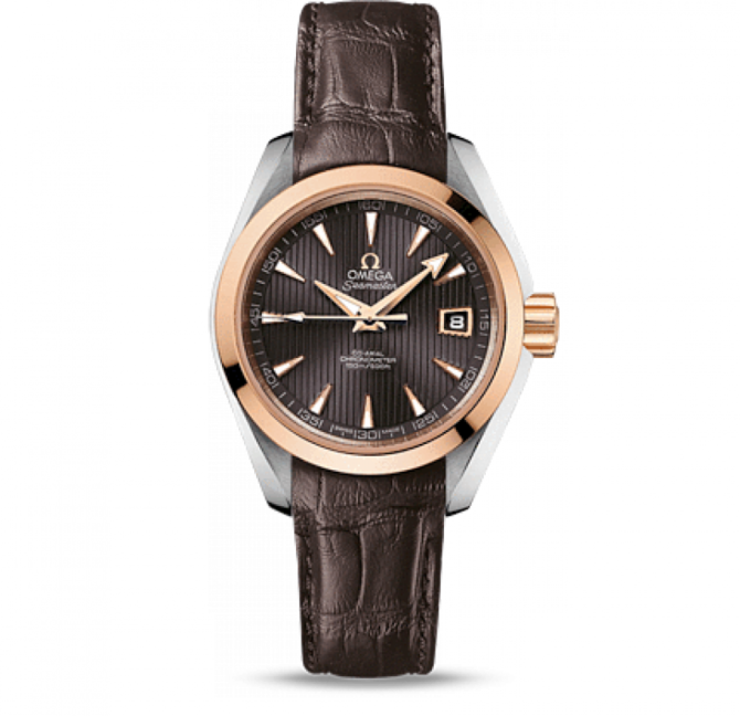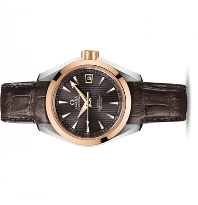 Эти высокопрочные часы с классическим дизайном воздают должное богатому морскому наследию OMEGA. Эффектный, мгновенно узнаваемый дизайн циферблата, характерный для коллекции OMEGA Seamaster Aqua Terra 150M, напоминает текстуру тикового покрытия роскошных яхт. Данная модель имеет коричневый циферблат, оформленный в стиле фирменной «тиковой концепции», с окошком указателя даты в положении «3 часа». Оригинальный циферблат защищен устойчивым к царапинам сапфировым стеклом с двусторонним антибликовым покрытием. Корпус диаметром 30 мм из нержавеющей стали с коричневым ремешком из кожи аллигатора дополнен безелем из 18-каратного розового золота. В этом сертифицированном хронометре используется коаксиальный часовой механизм OMEGA, калибр 8520, который хорошо виден через прозрачную заднюю крышку. Часы водонепроницаемы и способны выдержать давление на глубине до 150 метров. Запас хода данного механизма - 50 часов.
