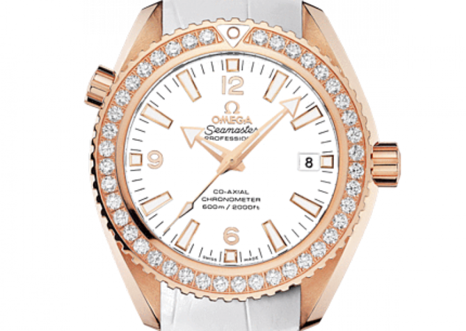 В 2005 году OMEGA выпустила линию Planet Ocean. Стильная модель OMEGA Seamaster Planet Ocean 600M воздает дань историческим традициям дайверских часов OMEGA. На ее белом циферблате, защищенном устойчивым к царапинам сапфировым стеклом, выделяется окошко указателя даты в положении «3 часа». Корпус диаметром 42 мм из 18-каратного красного золота с белым кожаным ремешком дополнен украшенным бриллиантами безелем, вращающимся в одном направлении. Часы OMEGA Seamaster Planet Ocean 600M, оснащенные гелиевым клапаном, сохраняют водонепроницаемость на глубинах 600 метров. Коаксиальный калибр OMEGA 8501, механическое сердце этих часов, хорошо виден через прозрачную заднюю крышку. Запас хода часов - 60 часов.