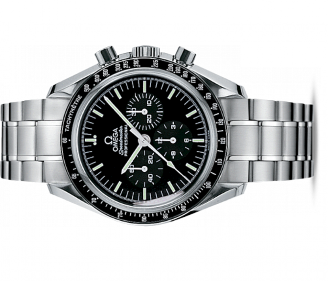 OMEGA Speedmaster – одни из самых культовых часов OMEGA. Побывав во всех шести лунных экспедициях, легендарные часы Speedmaster стали впечатляющим символом, выражающим первопроходческий дух марки OMEGA. Эта модель OMEGA Speedmaster Professional «Moonwatch» имеет накрытый хезалитовым стеклом черный циферблат с малой секундной стрелкой, 30-минутным и 12-часовым счетчиками, центральной стрелкой хронографа. Черный безель с тахиметрической шкалой закреплен на корпусе диаметром 42 мм из нержавеющей стали. Часы дополняет стальной браслет. Основу этого хронографа составляет механический калибр 1861 – знаменитый часовой механизм OMEGA с ручным заводом, который побывал с человеком на Луне. Часы водонепроницаемы и способны выдержать давление в 5 бар (50 метров). Запас хода часового механизма - 48 часов.
