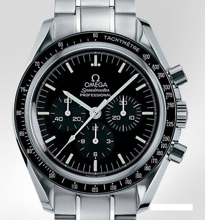 Эта модель швейцарских часов Omega Speedmaster - новинка 2014 года! Считаются одними из самых ярких часов мануфактуры. Поучаствовав в шести лунных миссиях, знаковые Speedmaster получили право считаться образцом приключенческого передового духа компании. Безель и циферблат черного цвета, два накопителя хронографа - тридцатиминутный и двенадцатичасовой, обладают центральной стрелкой хронографа. На безеле корпуса, размером 42 мм, виднеется шкала тахиметра. В комплекте идет браслет из высокопрочной нержавеющей стали. Установлен калибр Omega 1863 (механический), произведенный в 1861 году, что использовался на Луне. Часы поставляются в специализированной оригинальной коробке Moonwatch, содержащей ремень "НАТО", специальный инструмент для изменения размера браслета, липучку и книгу приключений Speedmaster.