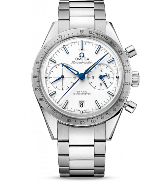 Побывав во всех шести лунных экспедициях, легендарные часы Speedmaster стали впечатляющим символом, выражающим первопроходческий дух марки OMEGA. Циферблат защищен устойчивым к царапинам сапфировым стеклом с антибликовым покрытием с двух сторон. Эта выдержанная в духе легендарного первоисточника модель имеет белый циферблат с малой секундной стрелкой в положении «9 часов» и совмещенными 12-часовым и 60-минутным счетчиками на вспомогательном циферблате в положении «3 часа». Имеются также центральная стрелка хронографа и окошко указателя даты в положении «6 часов». Все стрелки и часовые метки окрашены в синий цвет, что значительно выделяет их на фоне циферблата. Часы сохраняют свою водонепроницаемость на глубине до 100 метров. Титановая безель из с тахиметрической шкалой закреплен на корпусе диаметром 41,50 мм из того же материала, который дополнен титановым браслетом. Основу этих часов составляет калибр 9300 – первый коаксиальный часовой механизм OMEGA с хронографом. Запас хода сердца часов - 60 часов.