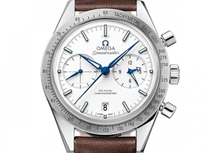 OMEGA Speedmaster – одни из самых культовых часов OMEGA. Циферблат защищен устойчивым к царапинам сапфировым стеклом с антибликовым покрытием с двух сторон. Эта выдержанная в духе легендарного первоисточника модель имеет белый циферблат с малой секундной стрелкой в положении «9 часов» и совмещенными 12-часовым и 60-минутным счетчиками на вспомогательном циферблате в положении «3 часа». Имеются также центральная стрелка хронографа и окошко указателя даты в положении «6 часов». Все стрелки и часовые метки окрашены в синий цвет, что значительно выделяет их на фоне циферблата. Титановая безель из с тахиметрической шкалой закреплен на корпусе диаметром 41,50 мм из того же материала, который дополнен коричневым кожаным ремешком. Основу этих часов составляет калибр 9300 – первый коаксиальный часовой механизм OMEGA с хронографом. Запас хода сердца часов - 60 часов. Часы сохраняют свою водонепроницаемость на глубине до 100 метров.