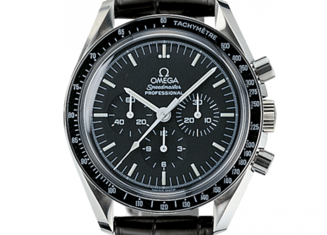 Побывав во всех шести лунных экспедициях, легендарные часы Speedmaster стали впечатляющим символом, выражающим первопроходческий дух марки OMEGA. Черный безель с тахиметрической шкалой закреплен на корпусе диаметром 42 мм из нержавеющей стали. Часы дополняет черный кожаный ремешок. Основу этого хронографа составляет механический калибр 1863 – знаменитый часовой механизм OMEGA с ручным заводом, который побывал с человеком на Луне. Он виден сквозь прозрачную заднюю крышку корпуса. Эта модель OMEGA Speedmaster Professional «Moonwatch» имеет черный циферблат который накрыт выпуклым, антибликовым, устойчивым к царапинам сапфировым стеклом, с малой секундной стрелкой, 30-минутным и 12-часовым счетчиками, центральной стрелкой хронографа. Запас хода часового механизма - 48 часов. Часы водонепроницаемы и способны выдержать давление в 5 бар (50 метров).