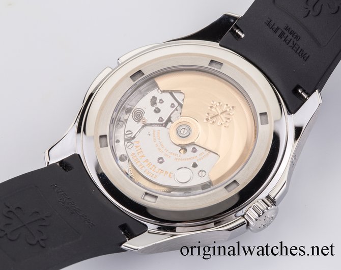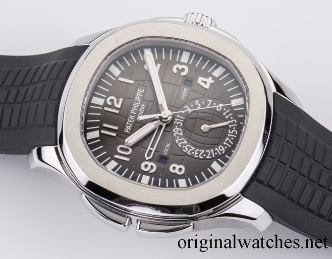 Patek Philippe Aquanaut 5164A-001 Механизм автоматический, Калибр 324 S C FUS. Размеры корпуса 40.8 мм. Корпус нержавеющая сталь. Особенности Водостойкие, Двойное время. Функции часы, минуты, секунды, дата, указатель день/ночь. Циферблат черный. Запас хода 45 часов. Ремешок каучук с вставкой из нержавеющей стали, откидная застежка. Дополнительная информация водонепроницаемость 120 м. Patek Philippe S.A. (по-русски произносится: Пате?к Фили?пп) — швейцарская компания — производитель часов. Основана в 1839 году эмигрантом-поляком Антонием Патеком и талантливым французским часовщиком Адрианом Филиппом. Часы этой марки — одни из самых дорогих серийных часов в мире. Символ фирмы — крест испанского ордена Калатравы; под этим же названием, Calatrava, выпускается «начальная» линейка моделей фирмы. Patek, Czapek & Cie основана в Женеве польскими эмигрантами Антонием Патеком и Франциском (Франсуа) Чапеком в 1839 году. Первая мануфактура Патека и Чапека, укомплектованная мастерами-поляками, производила до двухсот часов в год по индивидуальным заказам. В 1845 году Чапек покинул фирму из-за конфликта с Патеком, и мануфактура стала называться Patek & Cie.. 15 мая 1845 года место Чапека занял Жан Адриан Филипп — часовщик, изобретатель заводного механизма «без ключа». В 1851 году Филипп стал полноправным партнёром Патека, и фирма приобрела современное название — Patek Philippe & Co.. В товариществе Филипп отвечал за производство и разработку новых моделей, а Патек занимался сбытом, путешествуя по миру и привлекая на сторону фирмы влиятельных заказчиков, в том числе правящих монархов. Одни из первых часов под новой маркой были преподнесены королеве Виктории во время всемирной выставки 1851 года в Хрустальном дворце.