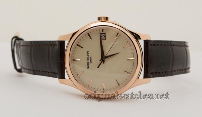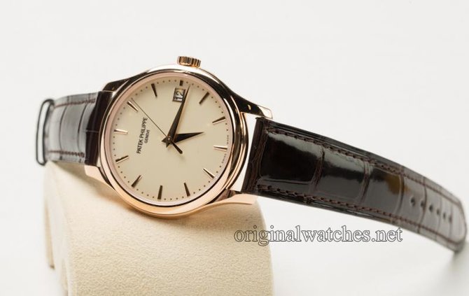 Новинка 2013г. Patek Philippe Calatrava 5227R-001 Механизм автоматический, Калибр 324 SC. Размеры корпуса 39 х 9.24 мм. Корпус розовое золото 18к. Функции часы, минуты, секунды, дата. Циферблат бежевый. Запас хода 48 часов. Ремешок кожа аллигатора с вставкой из розового золота 18к. Дополнительная информация водонепроницаемость 30 м. В 1901 году, когда оба титульных основателя давно умерли, фирму переименовали в Ancienne Manufacture d’Horlogerie Patek Philippe & Cie, S.A.. В 1932 году её приобрели братья Жан и Шарль Стерны, и тогда же установилось нынешнее название Patek Philippe S.A.. В 2007 году фирмой владеют и управляют третье и четвёртое поколение дома Стернов — отец и сын Филипп и Тьерри Стерны. Все производства и музей фирмы по-прежнему располагаются в Женеве[2]. В производстве занято 220 человек, в современном каталоге фирмы 45 серийных механизмов 23-х калибров. Объём производства, с учётом исключительно высоких цен, остаётся небольшим — выпуск часов Patek Philippe за всю историю существования оценивается в 600 тыс. штук. Золотая коллекция часов Patek Philippe Perpetual Calendar, это символика, которая указывает на определенный мир, мир роскоши, богатства, дорогих вещей и успеха. Модели этой линейки, выбирают для себя спортсмены, политики и самые обеспеченные люди со всего мира. Данные часы, это признак определенного статуса, они указывают окружающим об изысканности и вкусе владельца. Аксессуары, выполненные лишь с драгоценных материалов, оснащаются исключительно механизмом из Швейцарии. Дополнительные функции, и невероятные параметры, позволяют назвать данные часы лучшими.