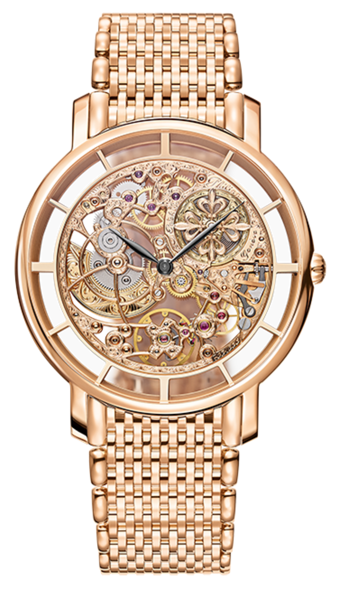Безупречная ручная работа инженеров часовой мануфактуры Patek Philippe - золотые швейцарские часы Patek Philippe Complications 5180/1 5180/1R-001 со скелетонизированным циферблатом. Корпус, браслет и застежка к нему изготовлены из розового золота. Механизм с автоподзаводом, калибр 240 SQU, имеет 48-часовой запас хода и отвечает за индикацию часов и минут. Корпус имеет 30-метровую водозащиту. Циферблат защищается прочным сапфировым стеклом.