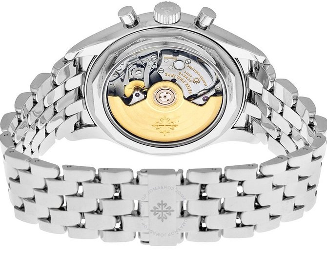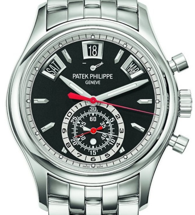 Часы от швейцарской компании Patek Philippe - это эталон изысканности и роскоши, сверхточности и надежности. Представленная мужская модель коллекции Complication имеет хронограф с функцией flyback, что в переводе обозначает "мгновенный возврат". У обычного хронографа необходимо нажать на кнопку три раза, то есть остановить хронограф, обнулить показания и запустить новый отсчет. С функцией flyback достаточно один раз нажать на кнопку, чтобы остановить отсчет и вернуть стрелку на ноль. Стоит кнопку отпустить, сразу же запустится следующий замер. На черном циферблате на уровне 6-часовой отметки расположен единый 12-часовой и 60-минутный счетчик. В верхней части циферблата размещены индикаторы дня недели, даты, месяца, времени суток. Присутствует также индикатор запаса хода часов. Автоматический механизм CH 28-520 IRM Q4 24H с запасом хода до 55 часов. Корпус из нержавеющей стали, верхняя и задняя крышка из сапфирового стекла обеспечивают калибру водонепроницаемость до 30 м. Комплектуются часы пятирядным браслетом из нержавеющей стали с раскладывающейся застежкой.