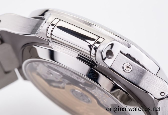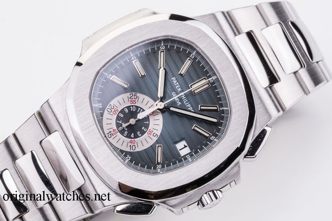 Швейцарские часы Patek Philippe Nautilus Chronograph представлены мануфактурой на автоматическом калибре CH 28-520 C, который стоит на 35 драгоценных камнях и имеет 55-часовой запас хода. Корпус, диаметром 43 мм, выполнен из высококачественной стали и наделен 100-метровым уровнем герметичности. Циферблат синего цвета мастера компании Patek Philippe накрыли сапфировым стеклом. Цифры на нем отсутствуют, вместо них - часовые метки с люминесцентным покрытием. Благодаря установленному калибру на гильошированном циферблате указываются часы, минуты, секунды, дата и данные хронографа. Просвечивающаяся задняя крышка из сапфирового стекла оголяет работу мануфактурного механизма CH 28-520 C с Женевским Клеймом. Стальной сплав 316L, из которого выполнены корпус, браслет и раскладывающаяся застежка, обладает высокими антикоррозийными свойствами.