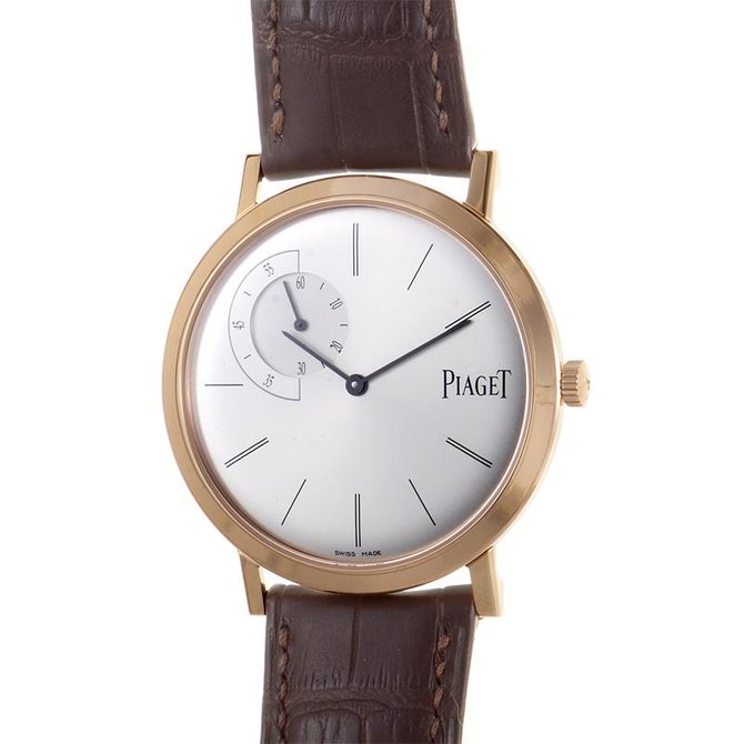 Эти ультратонкие часы, изготовленные в соответствии с лучшими традициями часового искусства Piaget, стали воплощением классического стиля. Строгий циферблат и удивительно тонкие продолговатые стрелки подчеркивают минималистский дизайн этой модели Altiplano, оснащенной малой секундной стрелкой. За работой механизма можно наблюдать через заднюю крышку из сапфирового стекла. Водонепроницаемость данной модели до 3 бар(30 метров). Ультратонкий мануфактурный механизм с ручным заводом Piaget 838P. Малая секундная стрелка. Имеют сапфировое стекло. Браслет выполнен из кожи аллигатора. Имеется задняя крышка из сапфирового стекла. Застежка классическая.