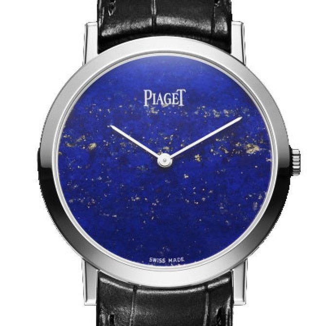 В 1964 году Piaget делает невозможное возможным, добившись предельной миниатюризации в области микромеханики и часового искусства. Благодаря недавно выпущенным новым ультратонким калибрам 9P и 12P Мануфактуре удается впервые создать модели с циферблатами из поделочных камней, дав начало одной из самых ярких художественных традиций Дома. Инновационное ноу-хау, неразрывно связанное с маркой Piaget, увековечено в коллекции Altiplano, которая убедительно доказывает: какими бы сложными ни были часовые технологии и дизайн, их можно воплотить в самых миниатюрных моделях. Пронумерованная серия представлена исключительно в бутиках Piaget. Каждое изделие подчеркивает уникальный характер камня. Модель диаметром 38 мм, оснащенная ультратонким мануфактурным механизмом 430P с ручным заводом, предлагает изысканное сочетание белого золота и лазурита. Вкрапления пирита придают этому камню насыщенного синего цвета очарование звездного неба. Лазурит стал одним из первых минералов, который в древности использовали для изготовления украшений и декоративных изделий. Водонепроницаемость данной модели до 3 бар(30 метров). Корпус из белого золота 18 карат. Циферблат из лазурита. Ультратонкий мануфактурный механизм Piaget 430P с ручным заводом. Пронумерованная серия. Имеют сапфировое стекло. Браслет выполнен из кожи аллигатора. Застежка классическая.