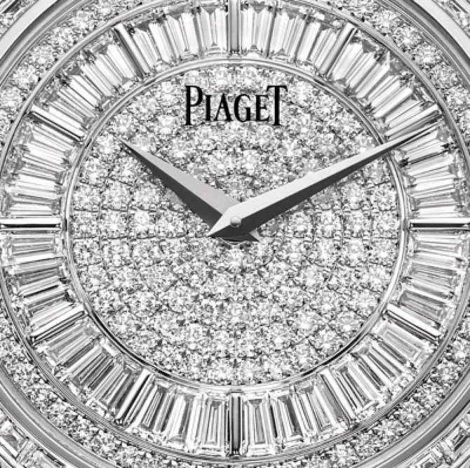Союз ультратонких форм и ювелирного искусства требует особого мастерства, которым Дом Piaget владеет в совершенстве. Оснащенные калибром нового поколения 830P, часы Dancer служат воплощением искусства создания ультратонких механизмов и являются самым тонким в мире часовым произведением в ювелирном исполнении. Благодаря искусному сочетанию бриллиантов круглой и багетной огранки, заменивших собой двойные вставки на ободке и крепления на браслете, в новом дизайне сохранился неповторимый характер часов Dancer. Бриллиантами усыпаны как поверхность, так и профили корпуса и браслета. Утонченность достигает своего апогея на браслете, где даже винты, обеспечивающие его невероятную мягкость и гибкость, элегантно декорированы бриллиантами круглой огранки. Часовщикам Дома Piaget потребовалось 700 часов на разработку и 325 часов на отделку новой ультратонкой модели Dancer. Водонепроницаемость данной модели до 3 бар(30 метров). Имеют сапфировое стекло. Корпус из белого золота 18 карат с 52 бриллиантами багетной огранки (около 2.8 карата) и 229 бриллиантами круглой огранки (около 1.7 карата). Циферблат с 36 бриллиантами багетной огранки (около 3.6 карата) и 162 бриллиантами круглой огранки (около 2.5 карата). Заводная головка с бриллиантом круглой огранки (около 0.1 карата). Браслет из белого золота 18 карат с 468 бриллиантами багетной огранки (около 19.8 карата) и 277 бриллиантами круглой огранки (около 2.6 карата). Задняя крышка из сапфирового стекла. Ультратонкий мануфактурный механизм Piaget 830P с ручным заводом. Браслет выполнен из отделки драгоценными камнями, золота. Застежка интегрированная.