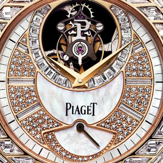 Союз высокого ювелирного и часового искусства требует особого мастерства, которым Дом Piaget владеет в совершенстве. Яркий образец часового искусства, механизм 600P оснащен самым тонким по форме турбийоном в мире. Исключительное ювелирное произведение, модель Piaget Polo невероятно щедро усыпана бриллиантами. Камнями украшены поверхность, профили и даже задняя крышка корпуса. Искусно расположенные по вертикали или по горизонтали камни багетной огранки идеально повторяют линии эмблематического дизайна, ярко контрастируя на циферблате из перламутра с бриллиантами круглой огранки. Часовщикам Дома Piaget потребовалось 400 часов на создание этой модели из розового золота диаметром 39 мм, украшенной 837 бриллиантами общим весом 13,6 карата. Часы предлагаются в паре с мужской версией диаметром 44 мм. Водонепроницаемость данной модели до 3 бар(30 метров). Имеют сапфировое стекло. Браслет выполнен из кожи аллигатора. Застежка раскладывающаяся. Корпус из розового золота 18 карат со 106 бриллиантами багетной огранки (около 7.1 карата) и 585 бриллиантами круглой огранки (около 3.9 карата). Циферблат из белого перламутра с 24 бриллиантами багетной огранки (около 0.7 карата) и 99 бриллиантами круглой огранки (около 0.2 карата). Заводная головка с бриллиантом круглой огранки (около 0.1 карата). Застежка с 22 бриллиантами багетной огранки (около 1.6 карата). Задняя крышка из сапфирового стекла. Мануфактурный механизм Piaget 600P с ручным заводом. Самый тонкий по форме «парящий» турбийон в мире толщиной 3.5 мм. Указатель запаса хода. Пронумерованная серия.