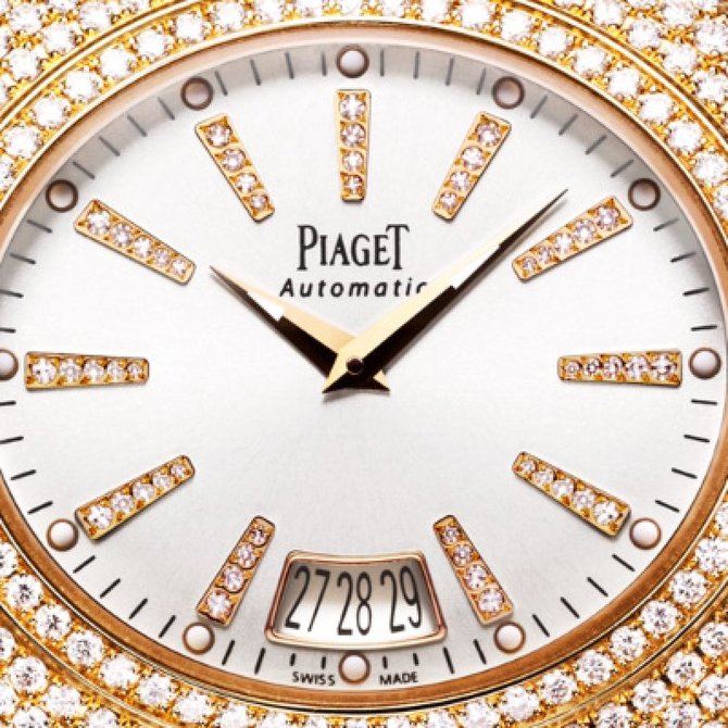 Созданные под влиянием оригинального дизайна начала 1960-х годов, часы Limelight отличаются овальным циферблатом, вписанным в корпус в форме «подушечка». Современная версия модели предлагает продуманный до мелочей городской стиль с изогнутыми корпусом, сапфировым стеклом и циферблатом, в котором гармонично сочетаются сила и нежность. Поверхность корпуса новой модели целиком усыпана бриллиантами – ювелирам Piaget потребовалось все их мастерство, чтобы заставить сверкающую инкрустацию следовать за каждым изгибом формы «подушечка». Камни, практически полностью скрывающие золотую основу, хитроумно расположены в шахматном порядке. Великолепная модель Limelight, снабженная механизмом с автоматическим подзаводом, которым можно полюбоваться через заднюю крышку из сапфирового стекла, предлагается в корпусе из розового золота на ремешке из коричневой кожи аллигатора. Водонепроницаемость данной модели до 3 бар(30 метров). Имеют сапфировое стекло. Браслет выполнен из кожи аллигатора. Корпус из розового золота 18 карат, полностью покрытый 228 бриллиантами круглой огранки (около 2.5 карата). Циферблат с часовыми индексами из 50 бриллиантов круглой огранки (около 0.1 карата). Заводная головка с бриллиантом круглой огранки (около 0.1 карата). Застежка с 17 бриллиантами круглой огранки (около 0.1 карата). Задняя крышка из сапфирового стекла. Мануфактурный механизм Piaget 524P с автоматическим подзаводом. Указатель даты. Застежка стандартная.